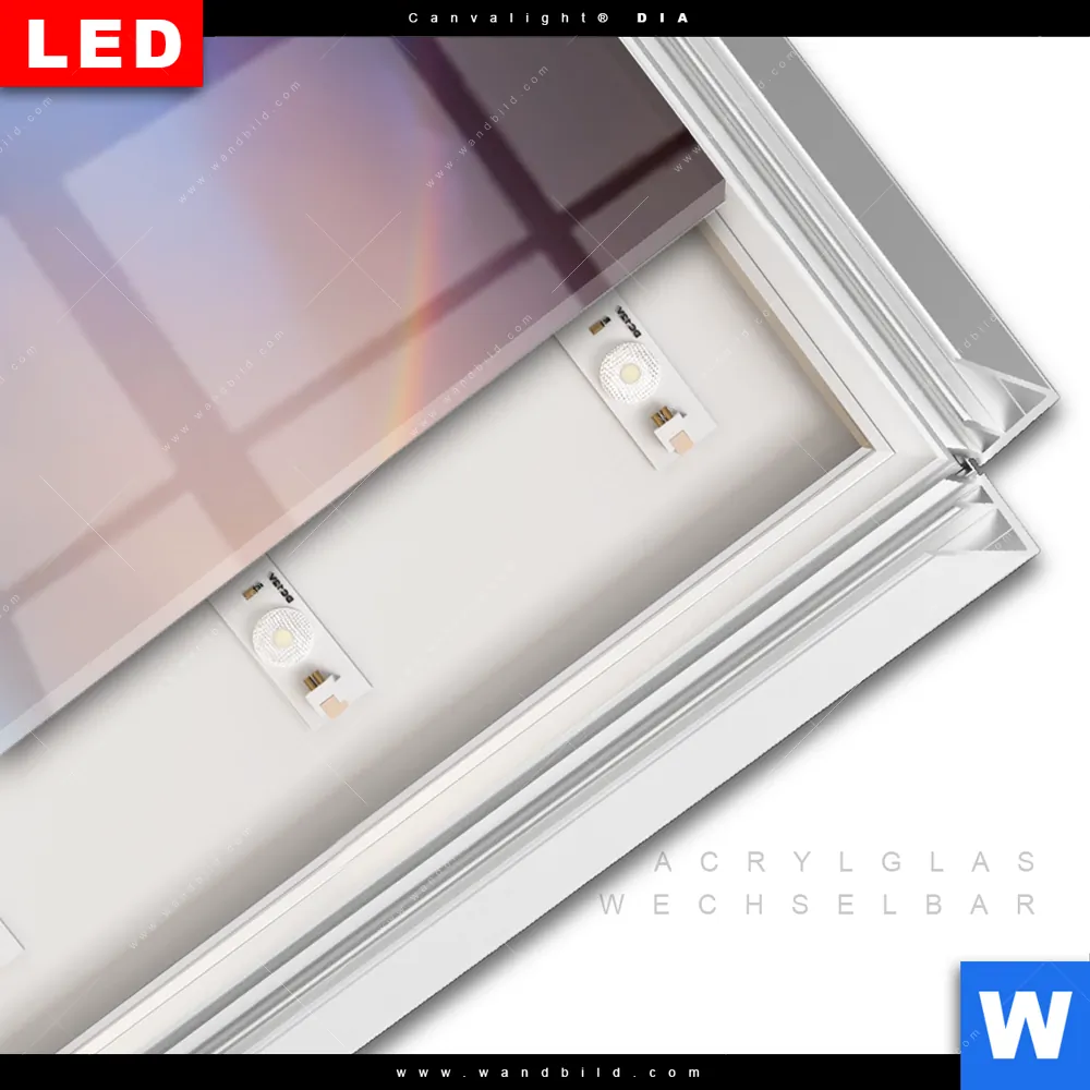 LED-Glasbild mit austauschbarem Acrylglas-Druck (Wechselbild)