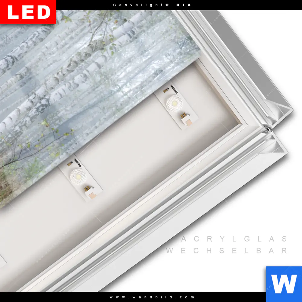 LED-Glasbild mit austauschbarem Acrylglas-Druck (Wechselbild)
