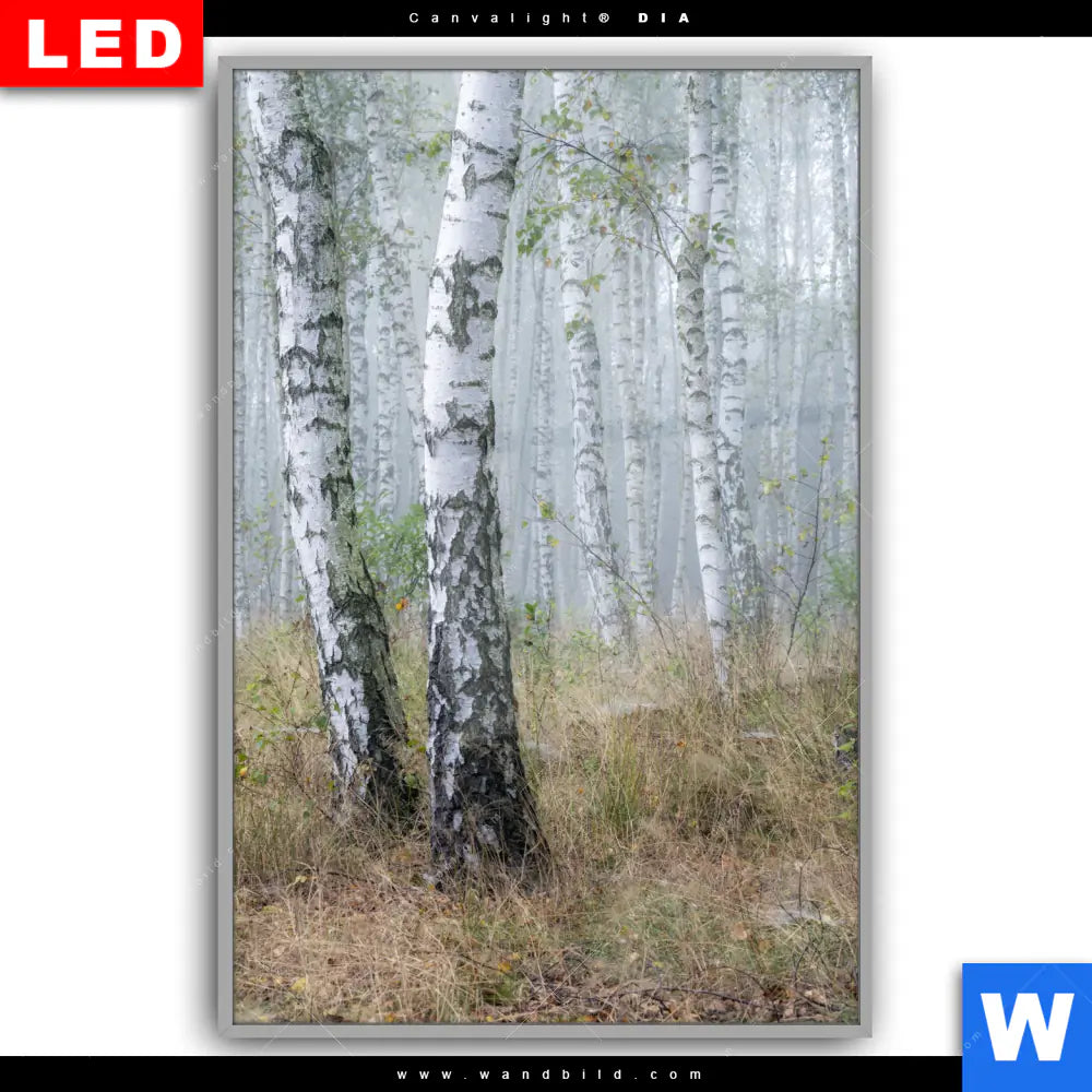 Canvalight® DIA Leuchtbild | Nebliger Morgen im Birkenwald | Hochformat
