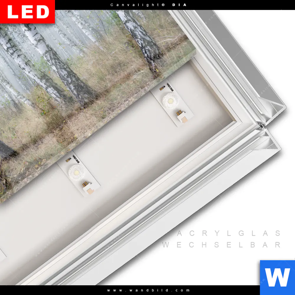 LED-Glasbild mit austauschbarem Acrylglas-Druck (Wechselbild)