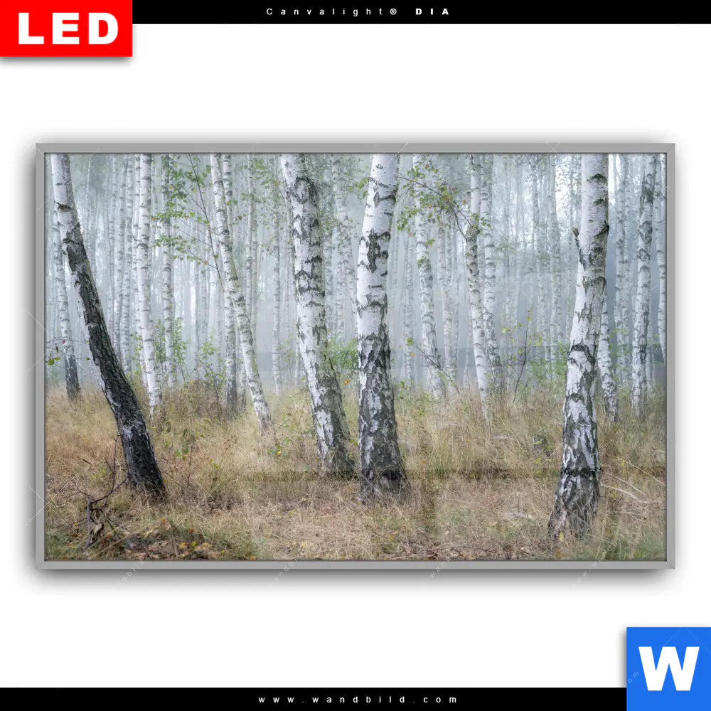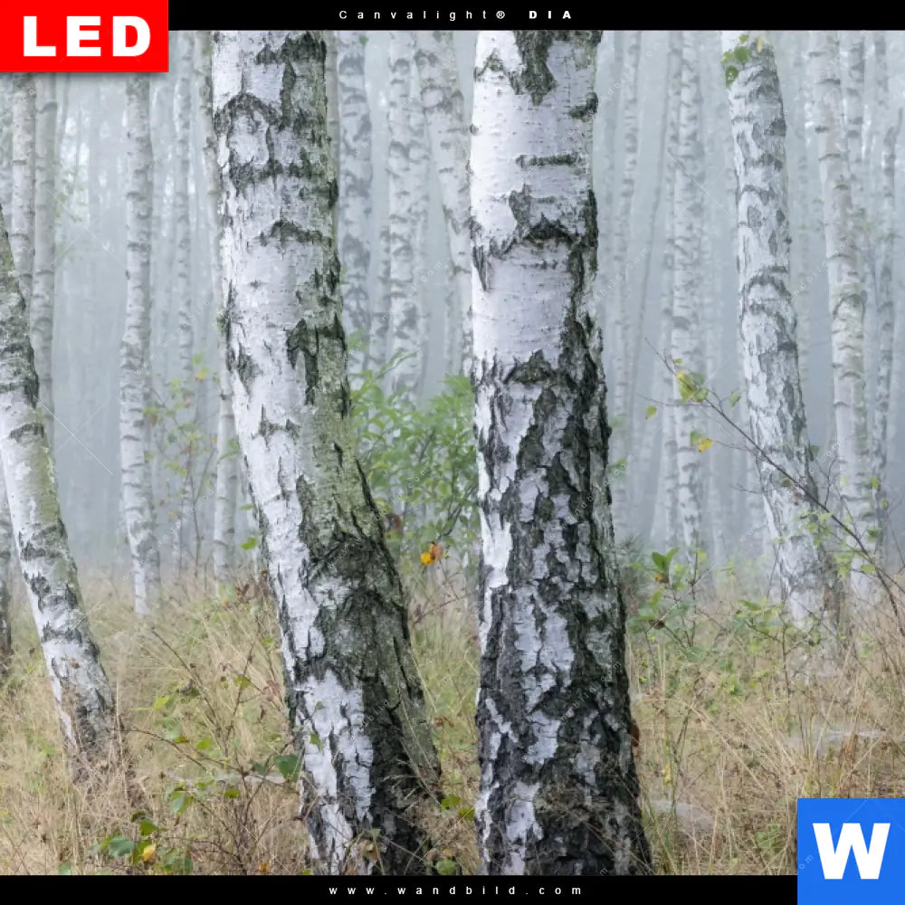 Canvalight® DIA Leuchtbild | Nebliger Morgen im Birkenwald | Querformat