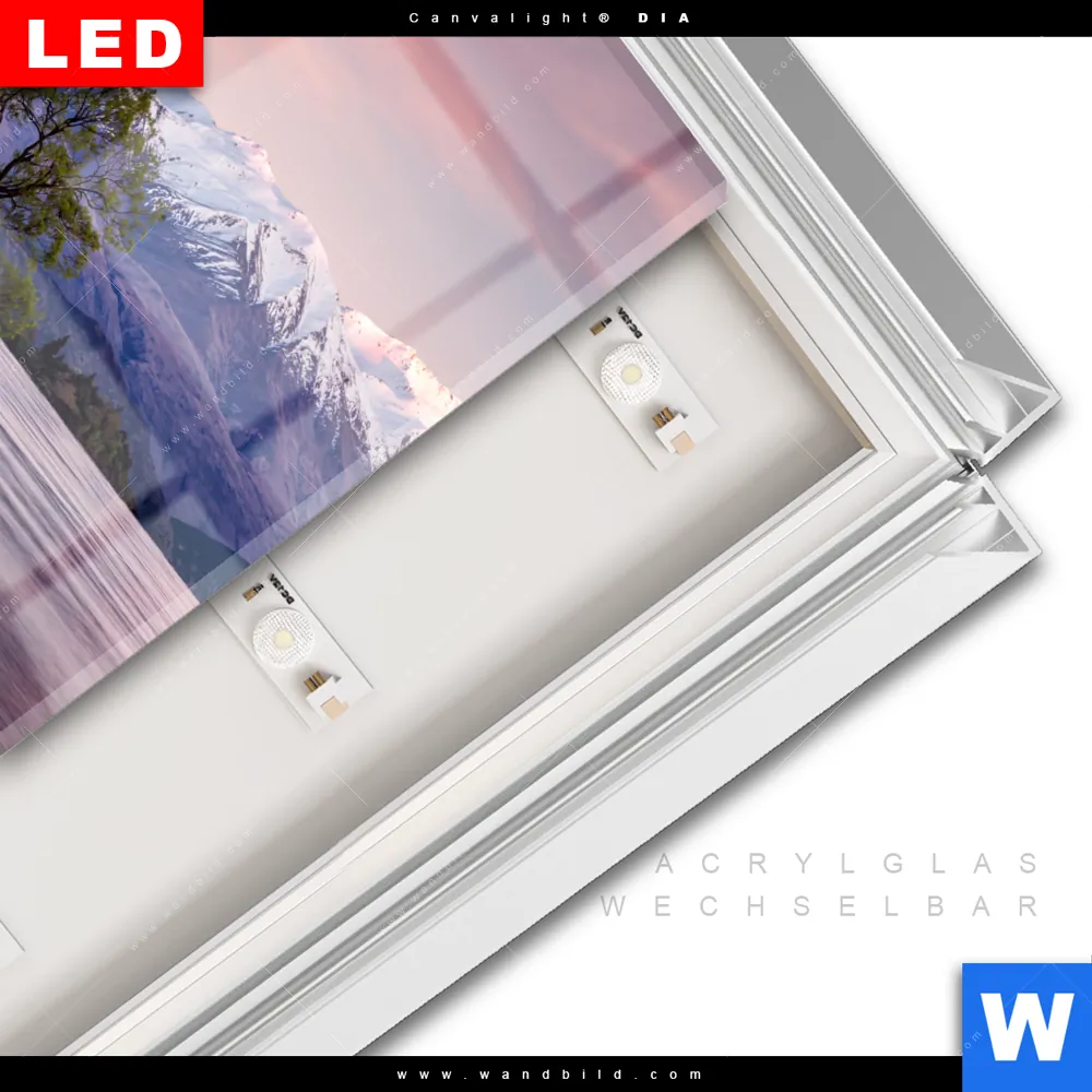 LED-Glasbild mit austauschbarem Acrylglas-Druck (Wechselbild)