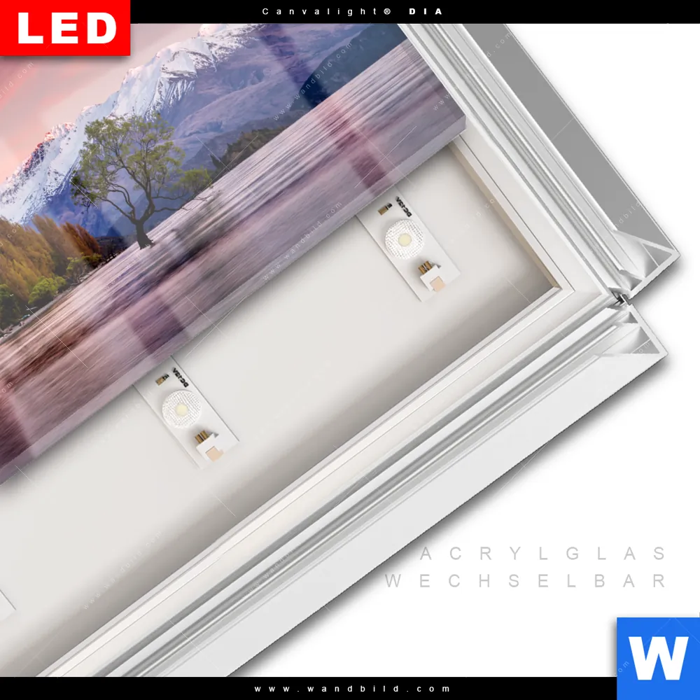 LED-Glasbild mit austauschbarem Acrylglas-Druck (Wechselbild)