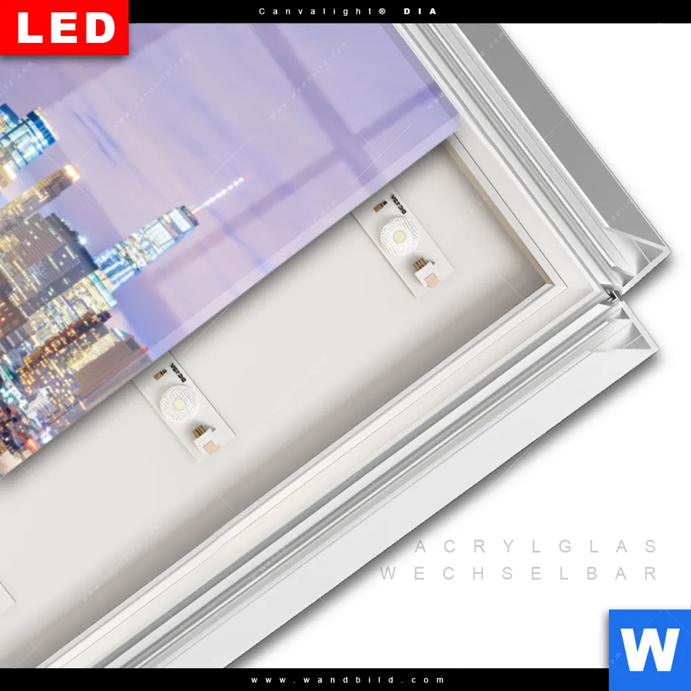 LED-Glasbild mit austauschbarem Acrylglas-Druck (Wechselbild)
