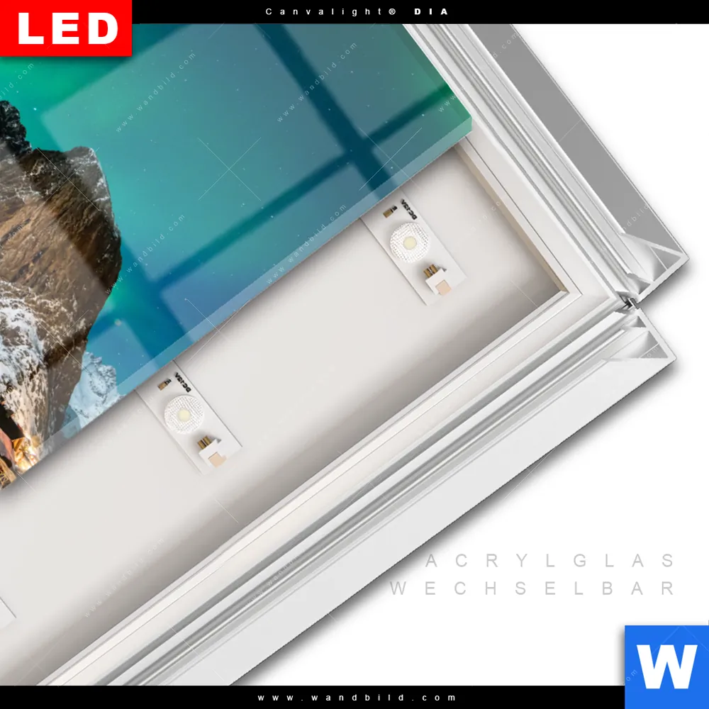 LED-Glasbild mit austauschbarem Acrylglas-Druck (Wechselbild)