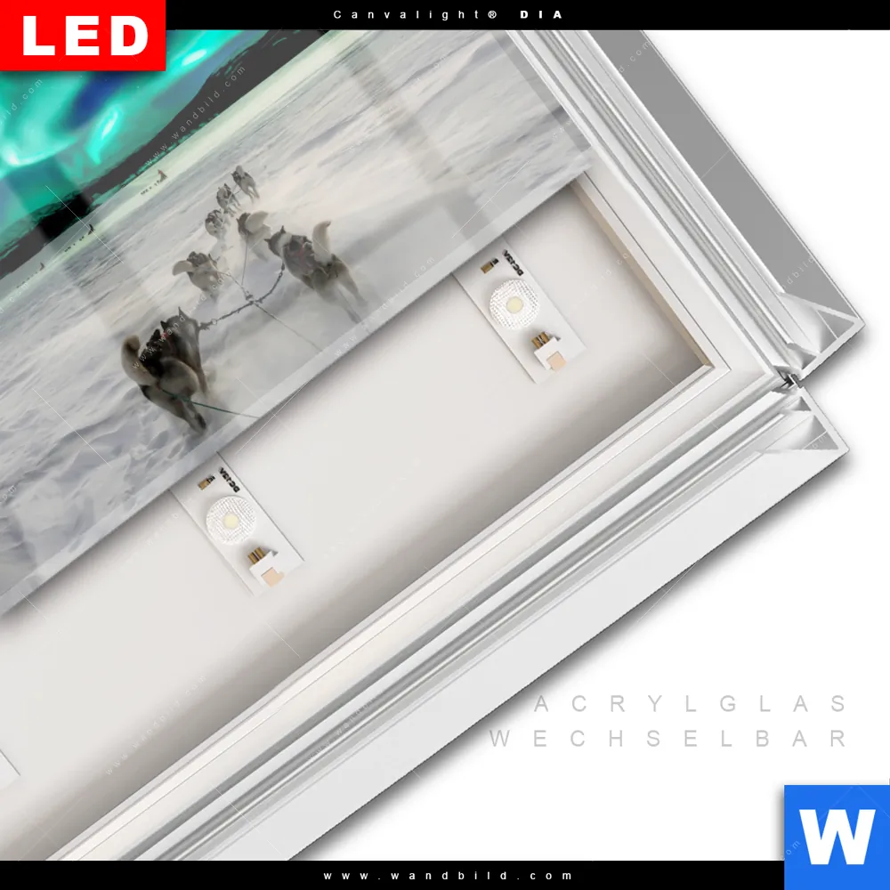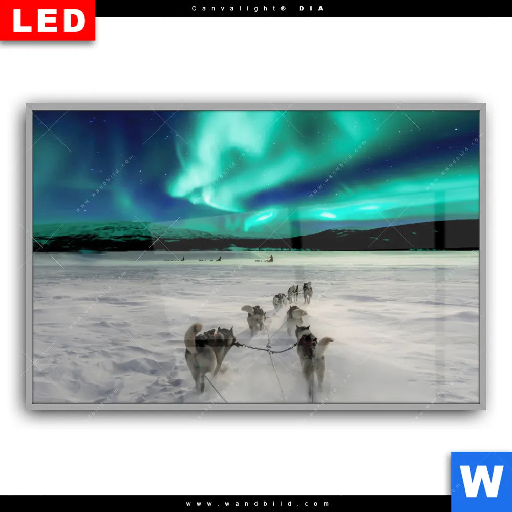 Canvalight® DIA Leuchtbild | Nordlichter und Schlittenhunde | Querformat