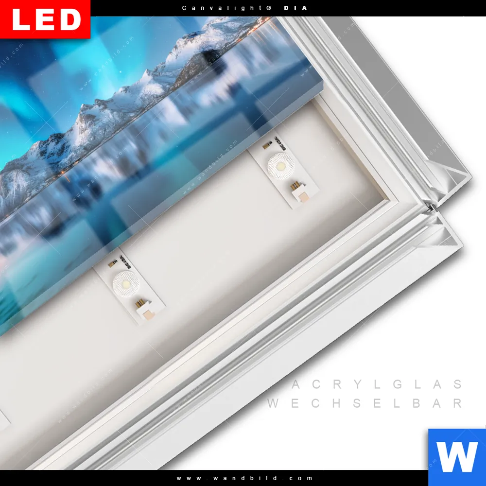 LED | Wechselrahmen-System | Acrylglas-Wechselbilder | DIA-Klapprahmen-Funktion