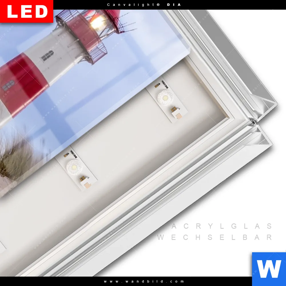 Leuchtbild Acrylglas Canvalight® DIA | Nordsee Leuchtturm | Schmal