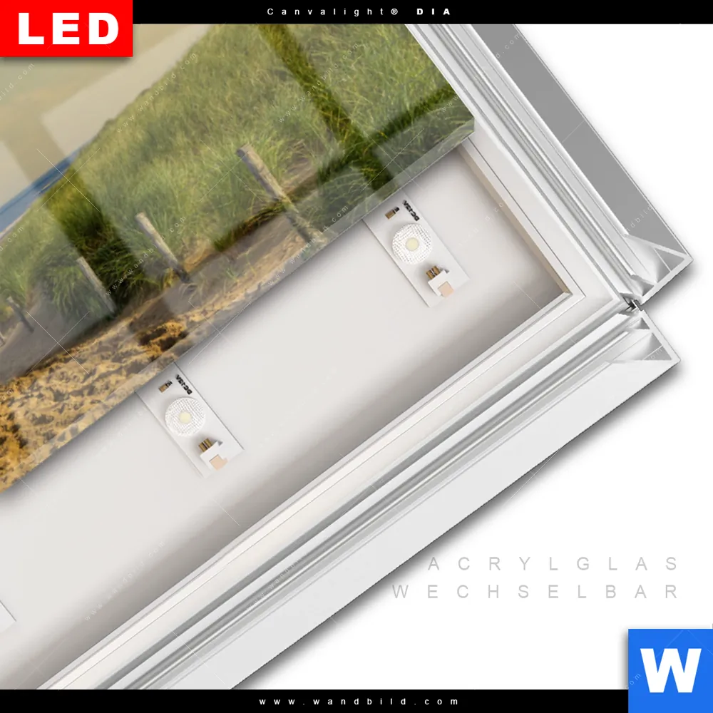 LED-Glasbild mit austauschbarem Acrylglas-Druck (Wechselbild)
