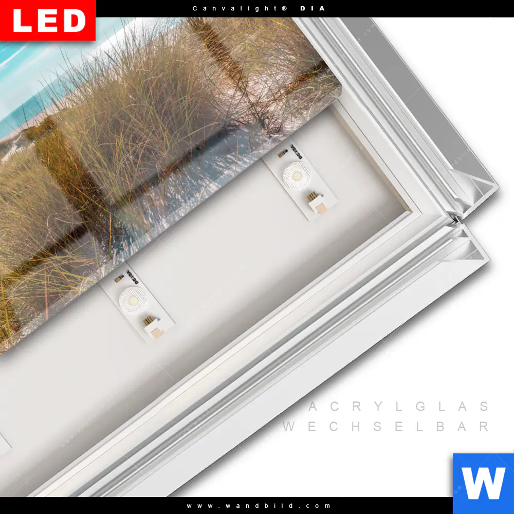 LED-Glasbild mit austauschbarem Acrylglas-Druck (Wechselbild)