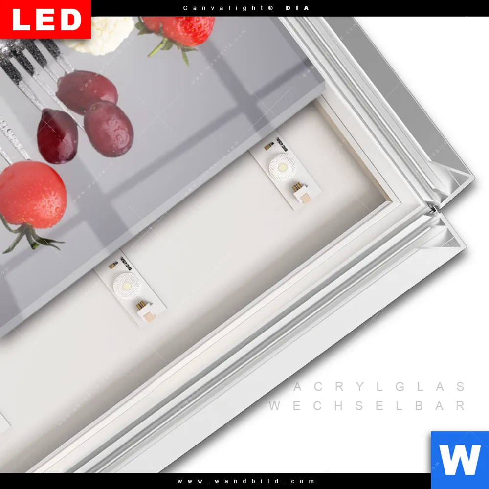 LED-Glasbild mit austauschbarem Acrylglas-Druck (Wechselbild)