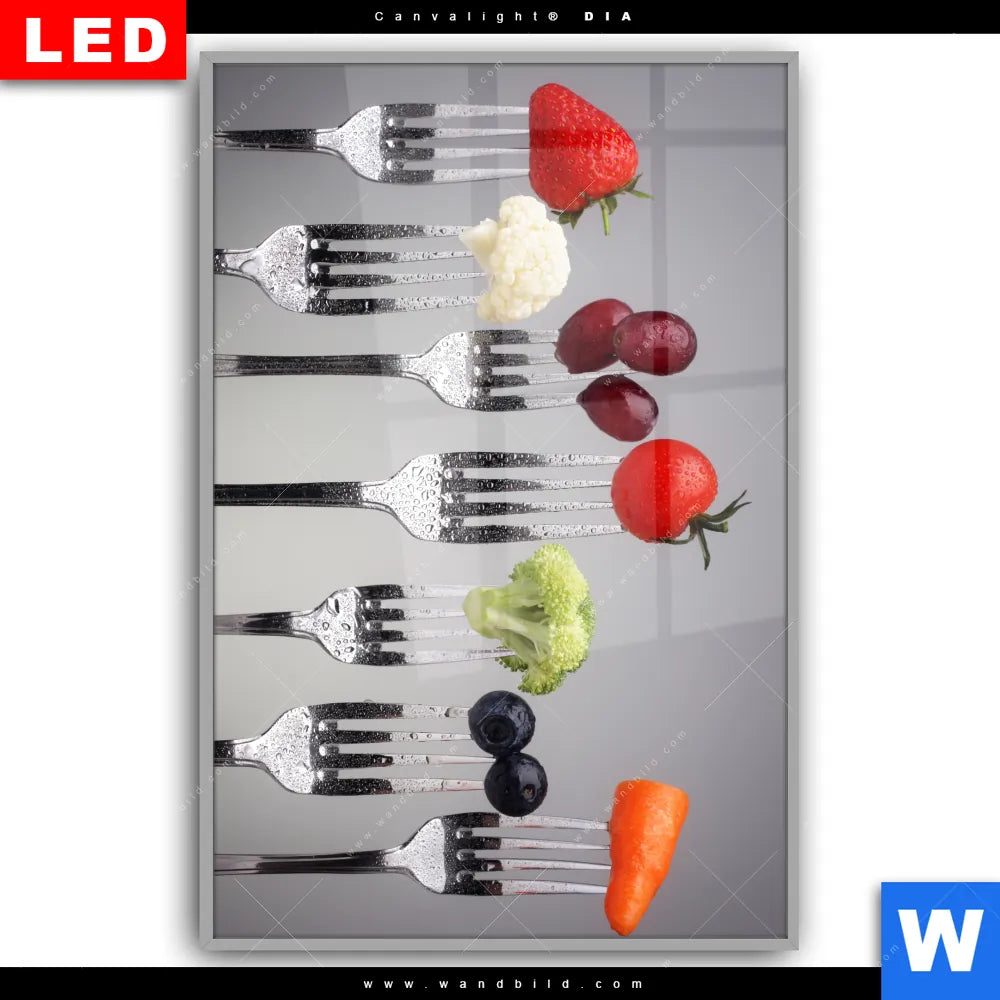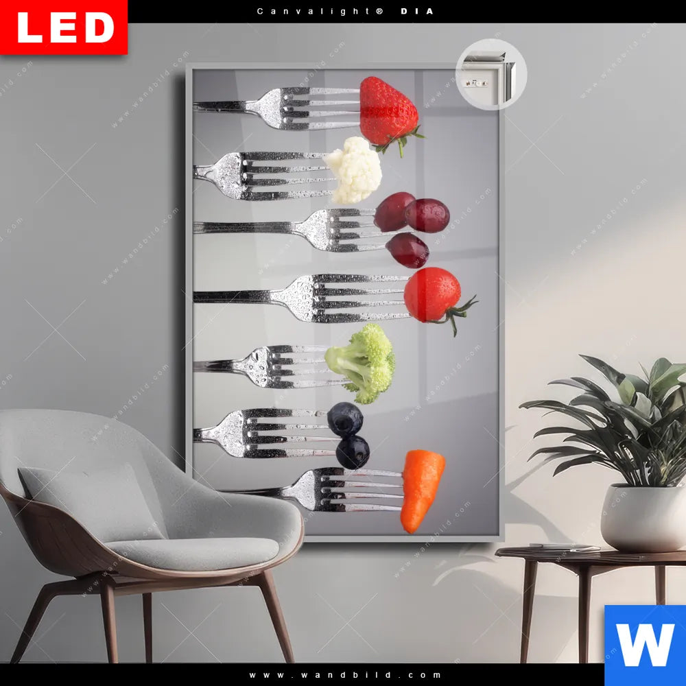 Canvalight® DIA Leuchtbild | Obst & Gemüse auf Gabeln | Hochformat