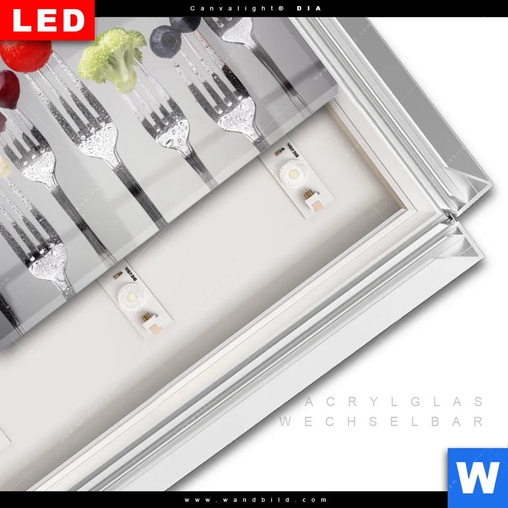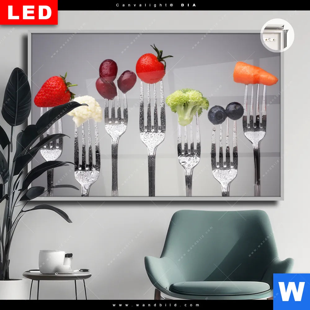 Canvalight® DIA Leuchtbild | Obst & Gemüse auf Gabeln | Querformat