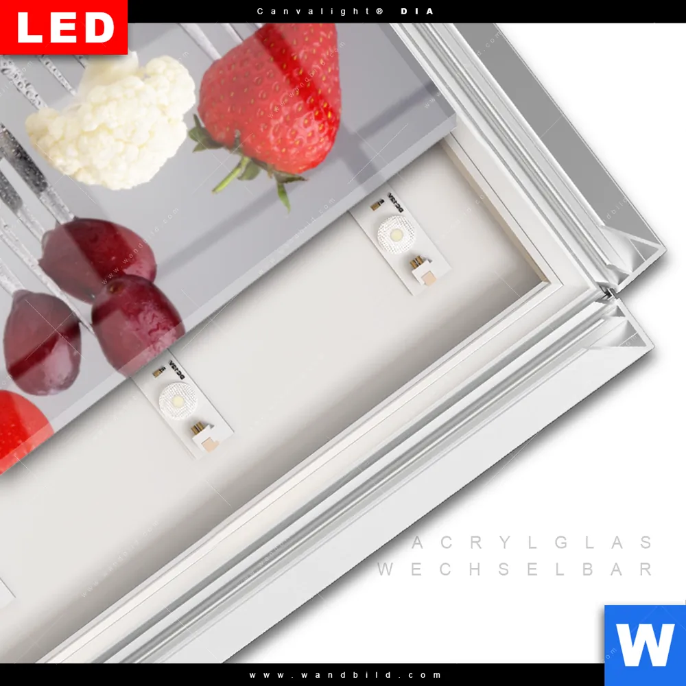LED-Glasbild mit austauschbarem Acrylglas-Druck (Wechselbild)