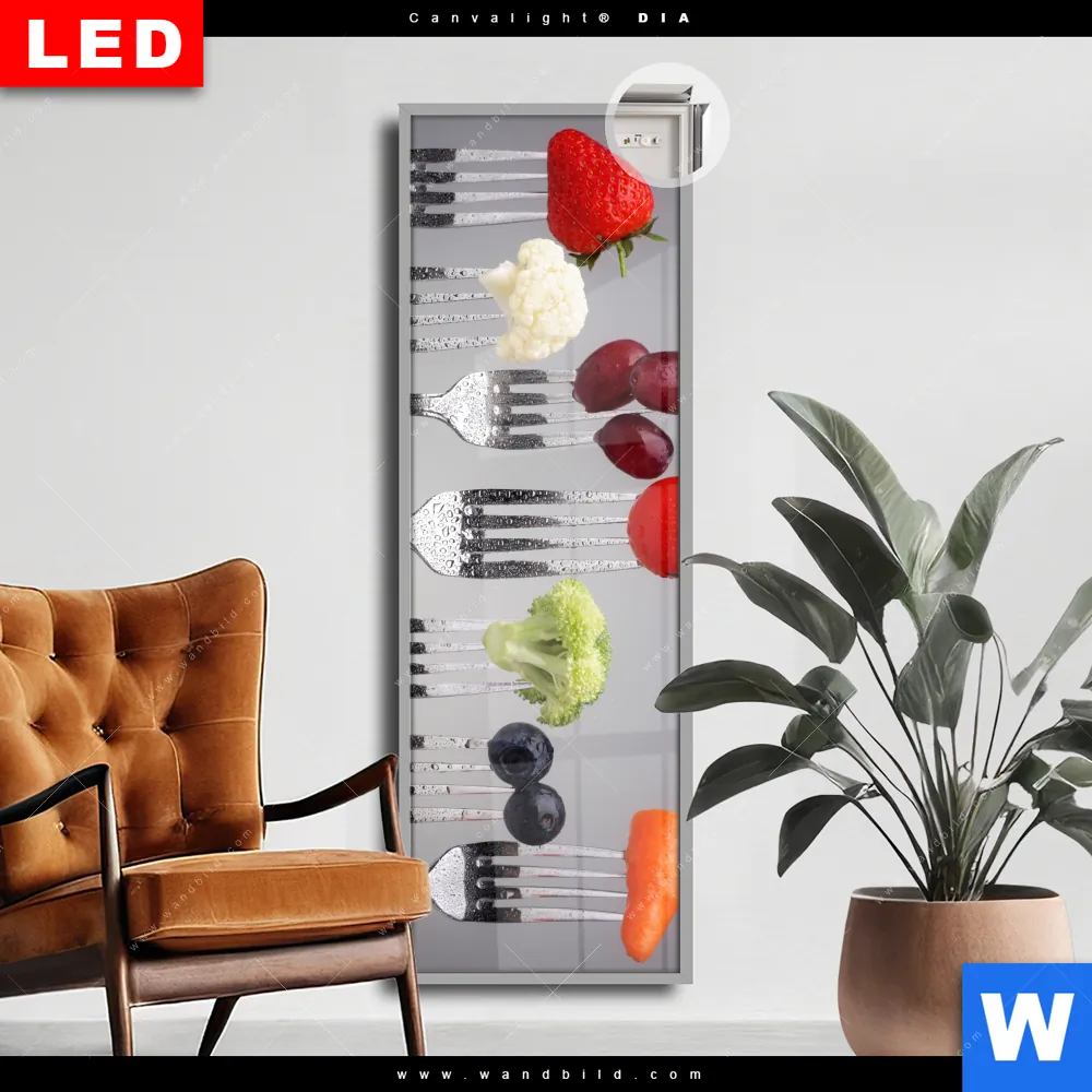 Canvalight® DIA Leuchtbild | Obst & Gemüse auf Gabeln | Schmal