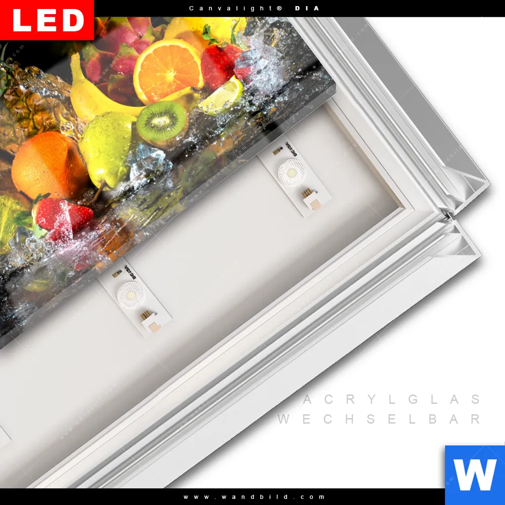 LED-Glasbild mit austauschbarem Acrylglas-Druck (Wechselbild)