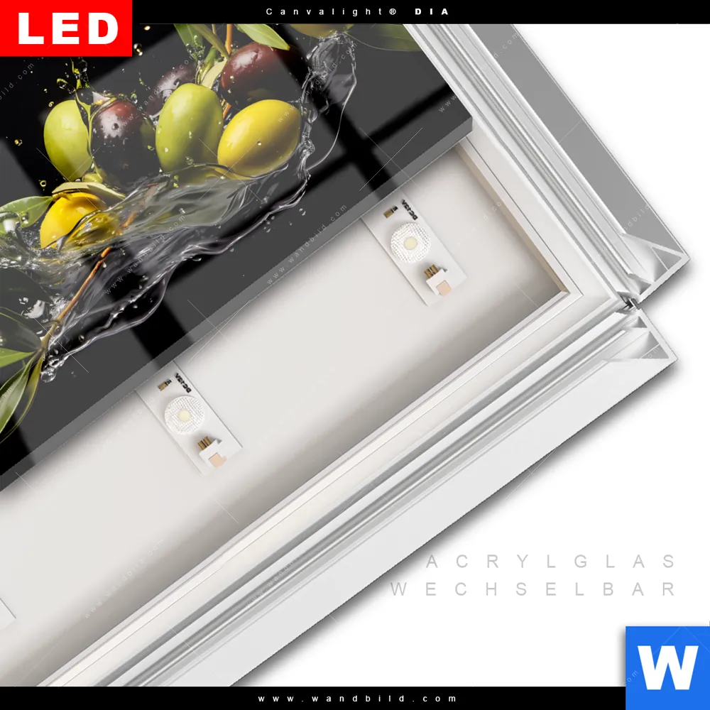Canvalight® DIA Leuchtbild | Oliven Splash | Querformat