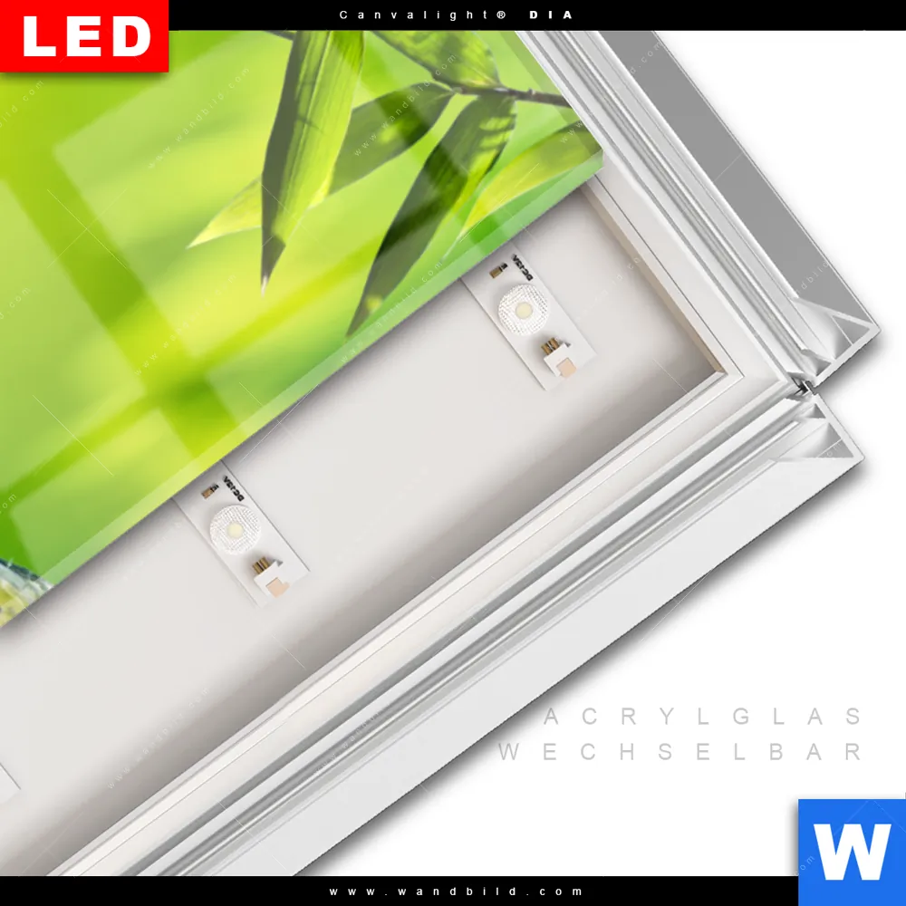 LED-Glasbild mit austauschbarem Acrylglas-Druck (Wechselbild)