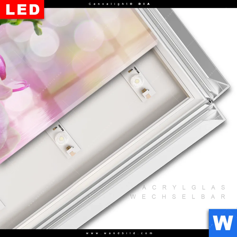 LED-Glasbild mit austauschbarem Acrylglas-Druck (Wechselbild)