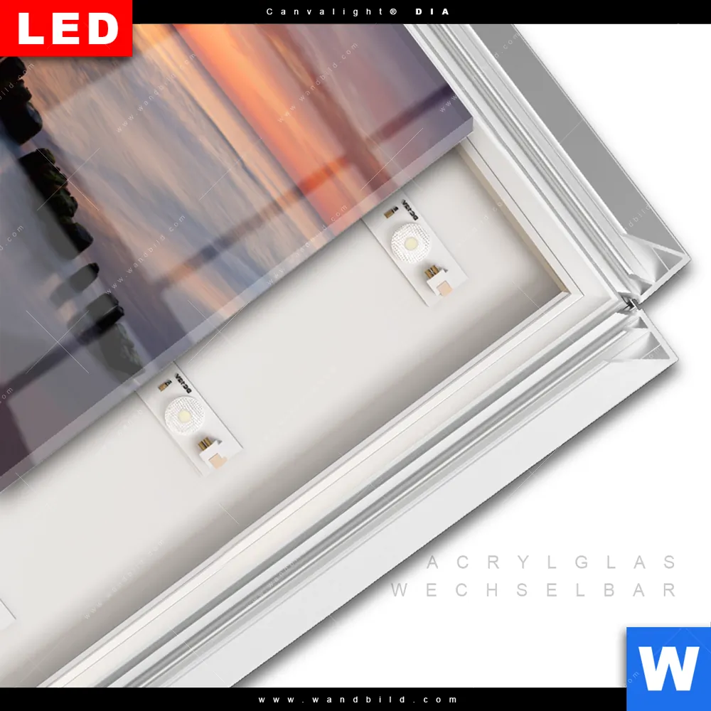 LED-Glasbild mit austauschbarem Acrylglas-Druck (Wechselbild)
