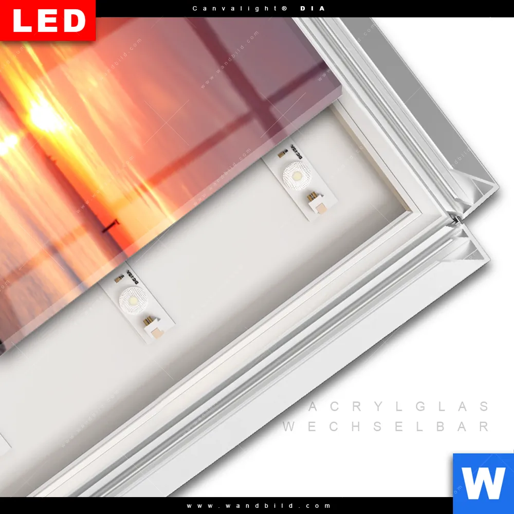 LED-Glasbild mit austauschbarem Acrylglas-Druck (Wechselbild)