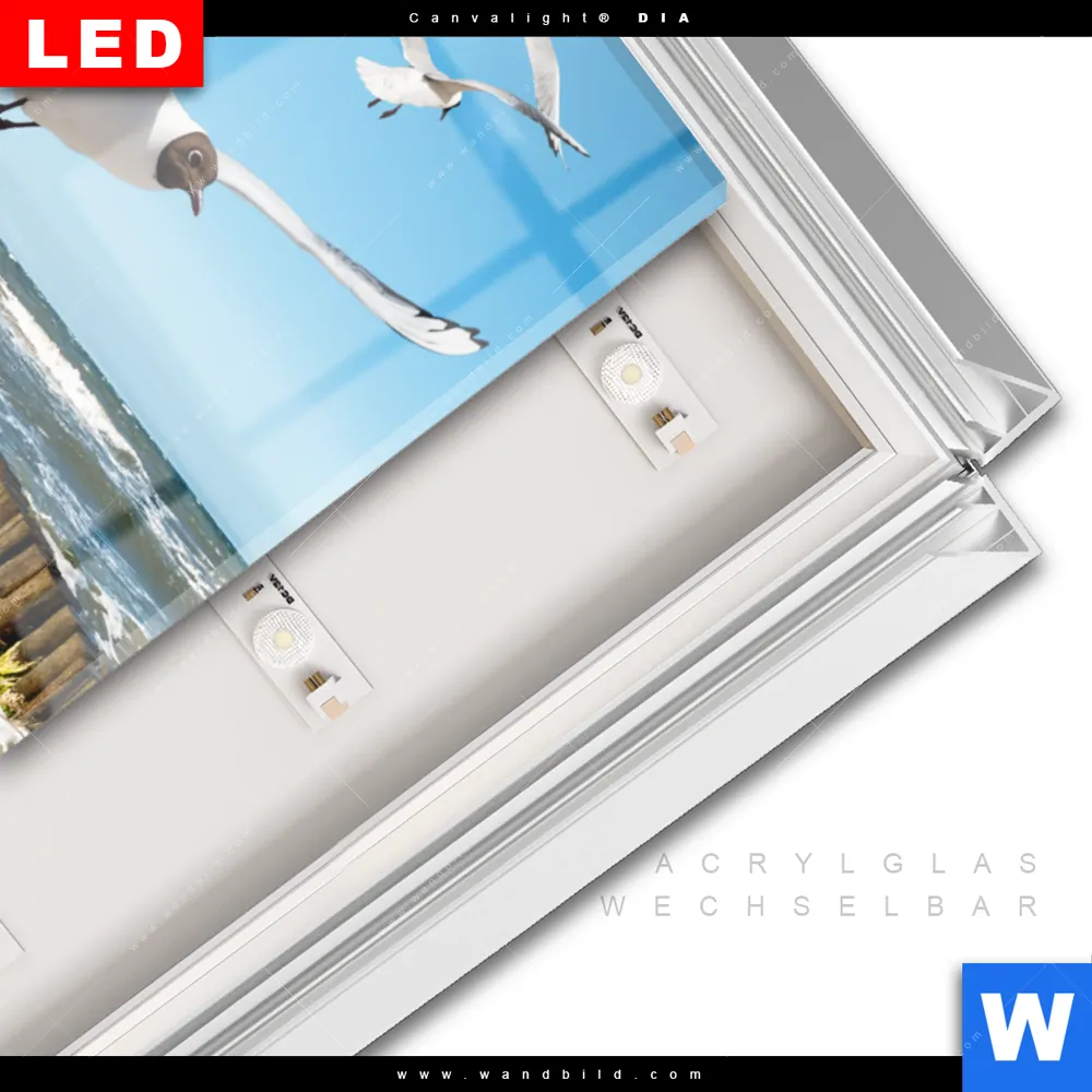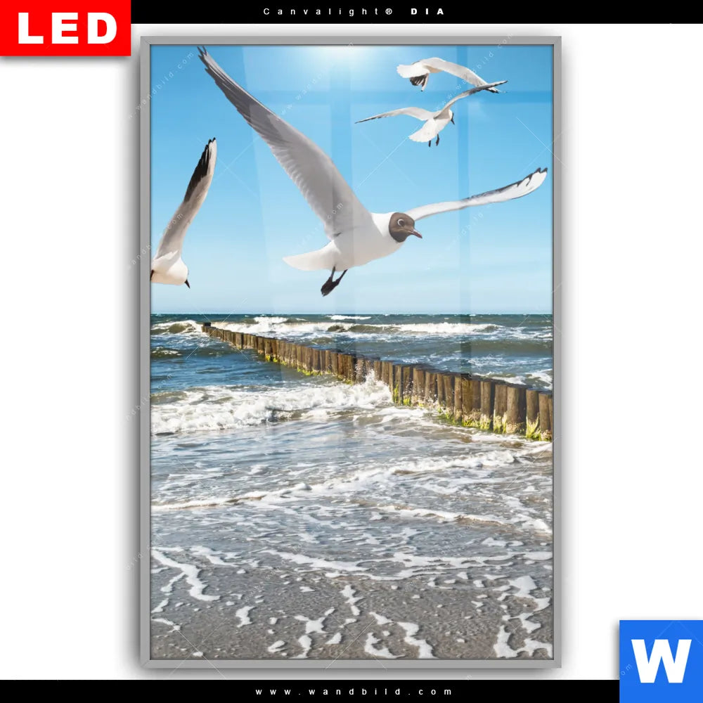 Canvalight® DIA Leuchtbild | Ostseeküste & Möwen | Hochformat