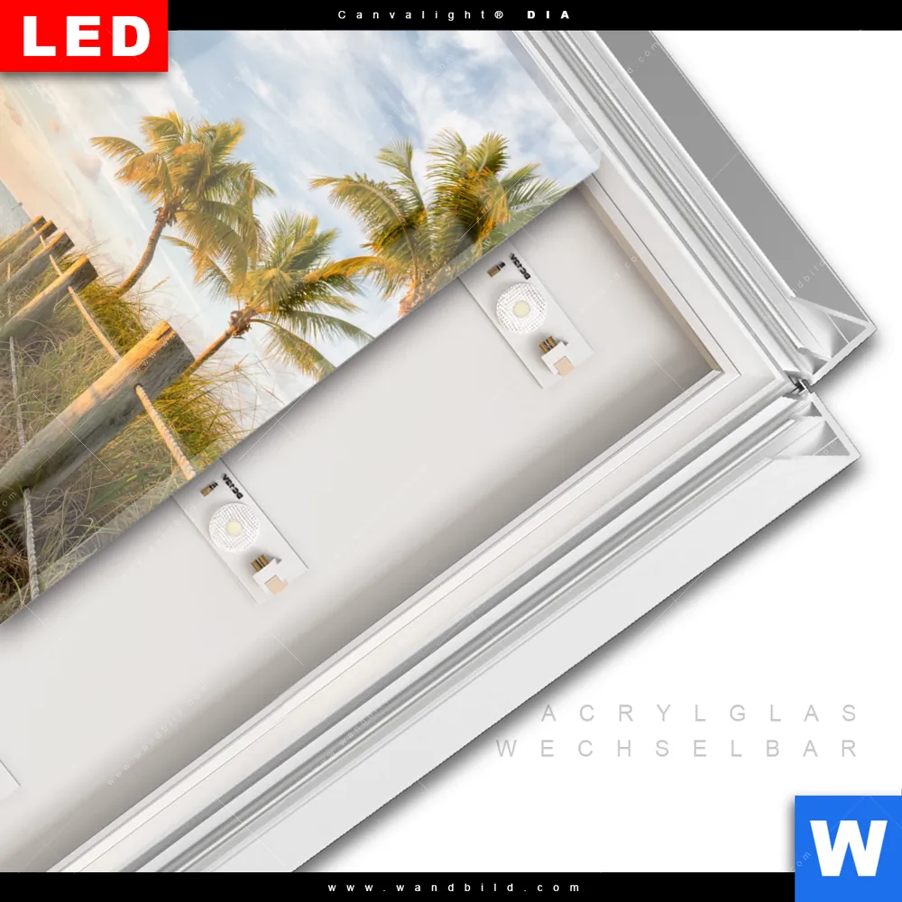 LED-Glasbild mit austauschbarem Acrylglas-Druck (Wechselbild)