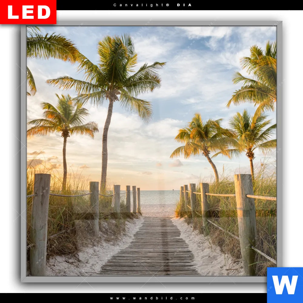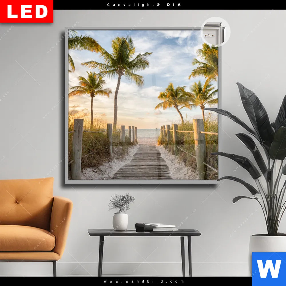 Canvalight® DIA Leuchtbild | Palmen am Strandweg | Quadrat