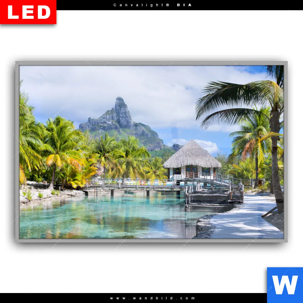 Canvalight® DIA Leuchtbild | Palmen & Berg auf Insel | Querformat