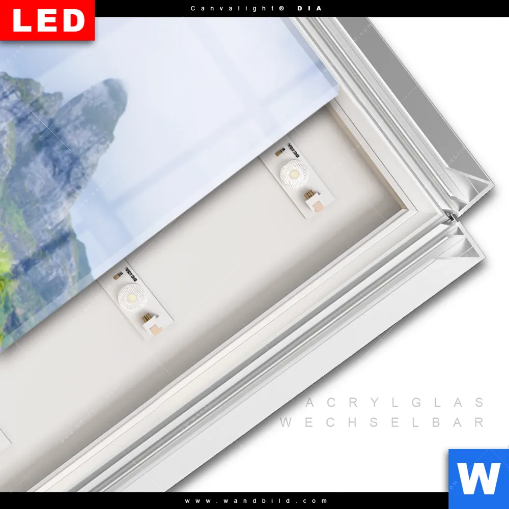 LED-Glasbild mit austauschbarem Acrylglas-Druck (Wechselbild)