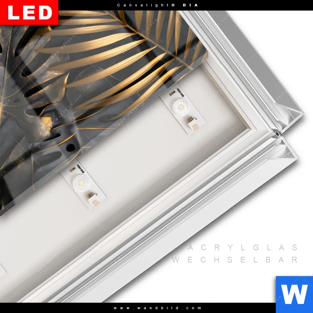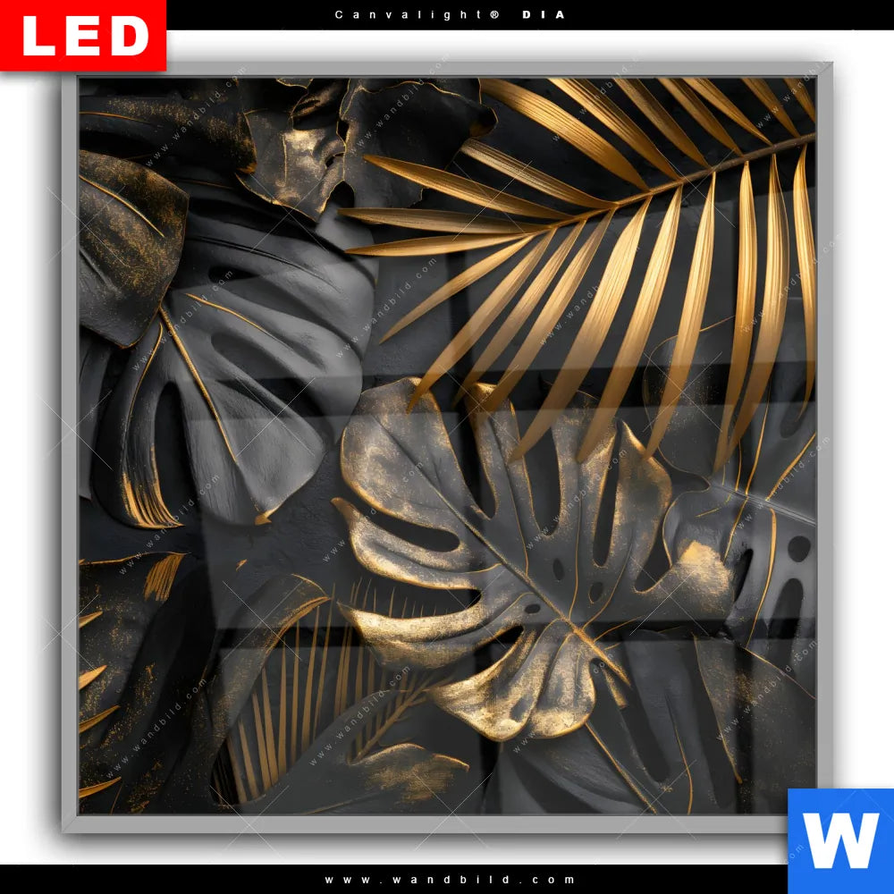 Canvalight® DIA Leuchtbild | Palmenblätter Schwarz Gold | Quadrat