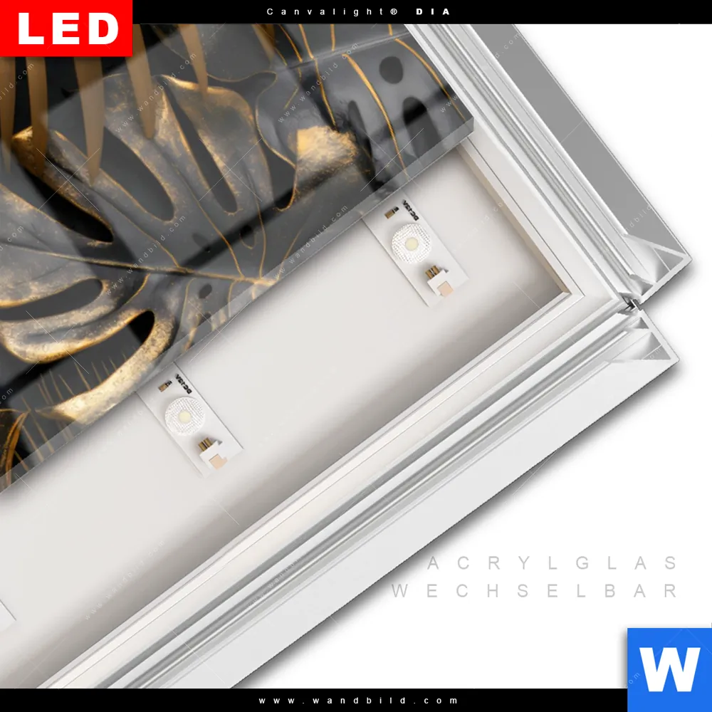 LED-Glasbild mit austauschbarem Acrylglas-Druck (Wechselbild)