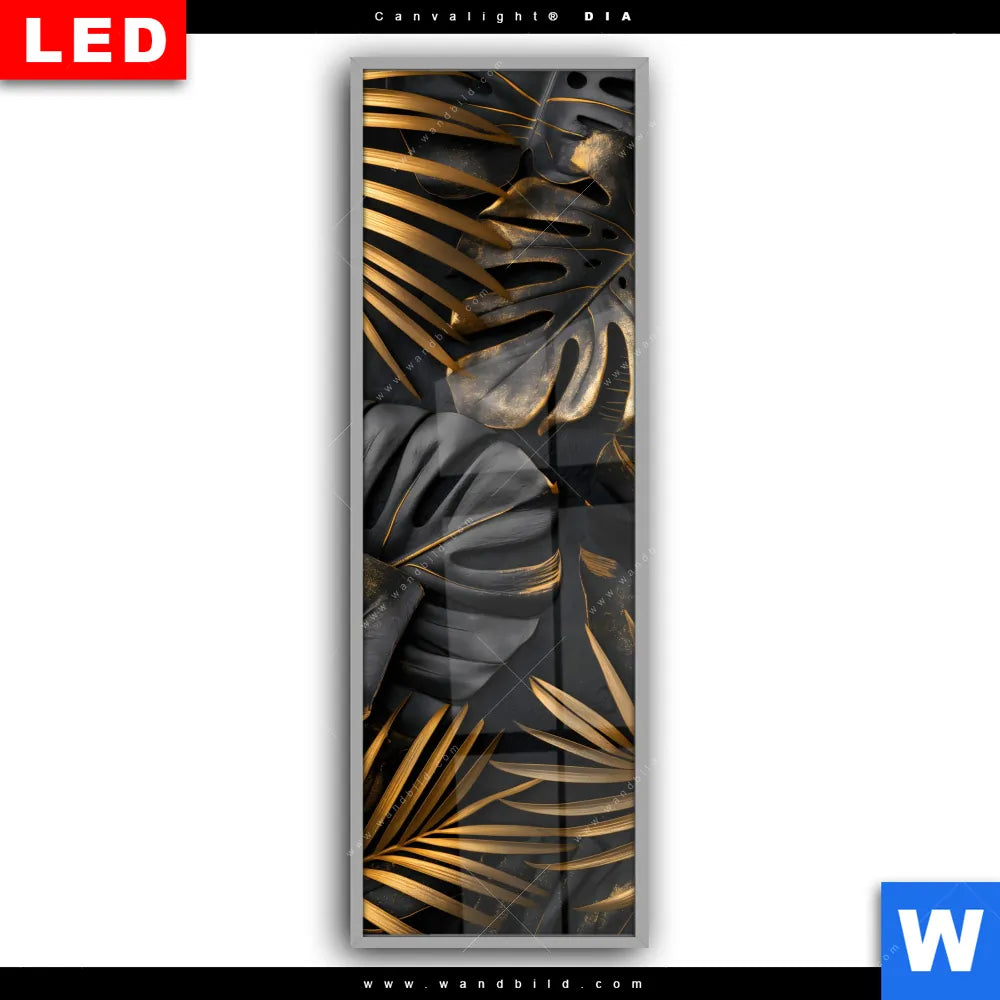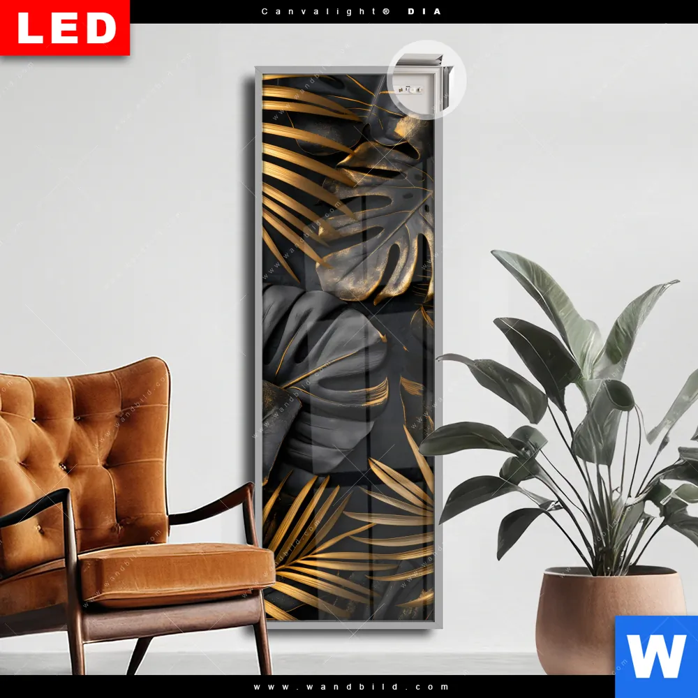 Canvalight® DIA Leuchtbild | Palmenblätter Schwarz Gold | Schmal