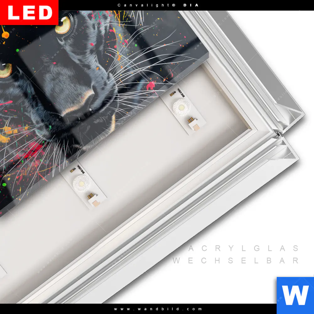 Canvalight® DIA Leuchtbild | Panther Farbexplosion | Querformat