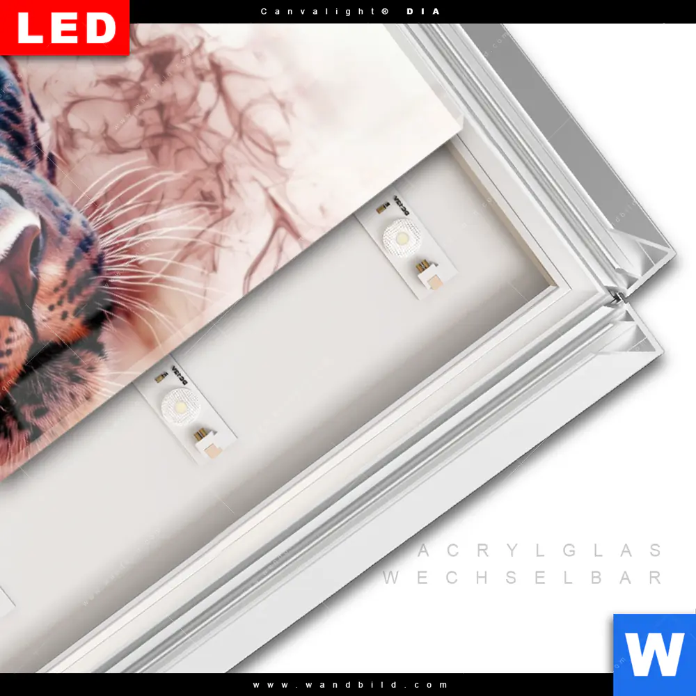 LED-Glasbild mit austauschbarem Acrylglas-Druck (Wechselbild)