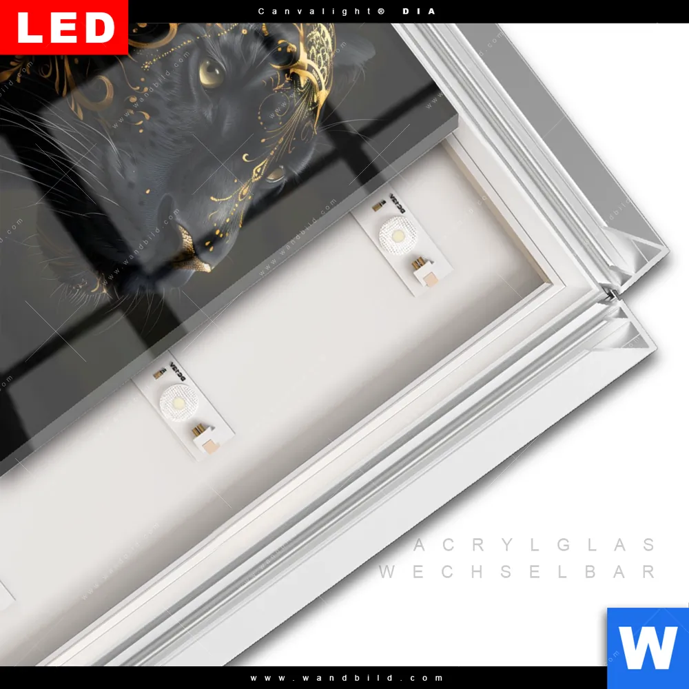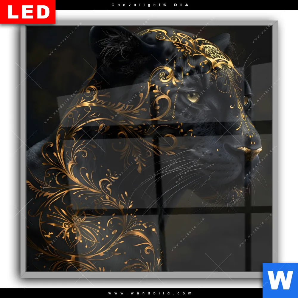 Canvalight® DIA Leuchtbild | Panther mit goldenen Ornamenten | Quadrat