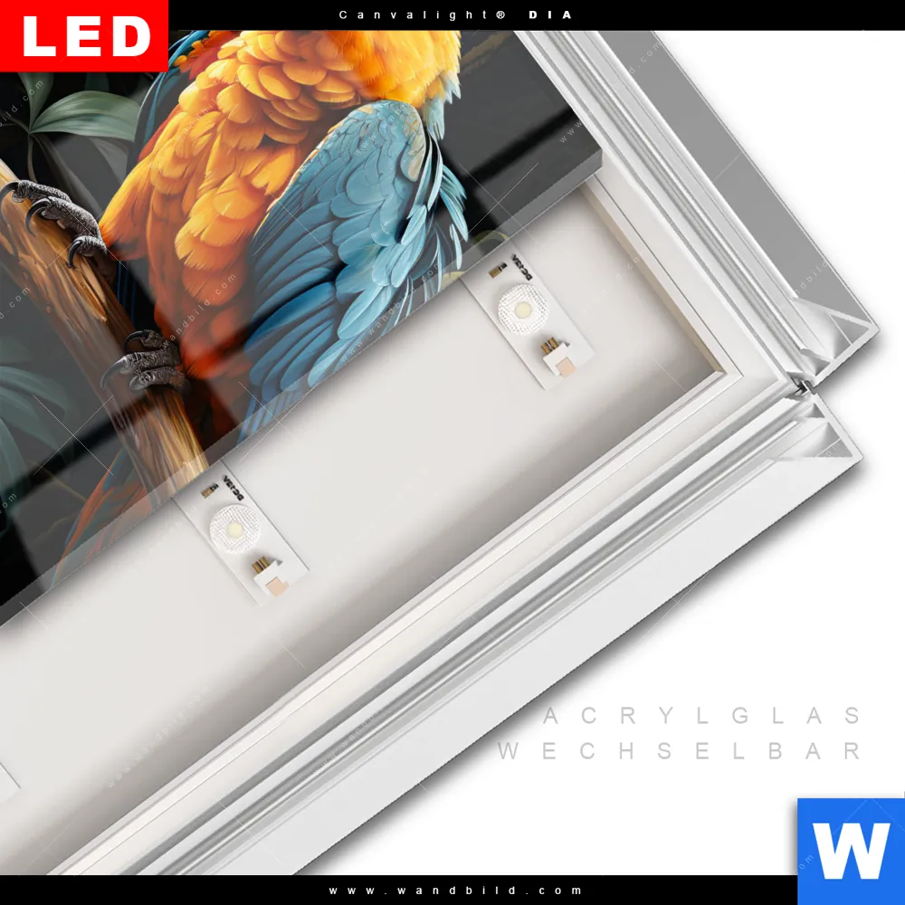 LED-Glasbild mit austauschbarem Acrylglas-Druck (Wechselbild)