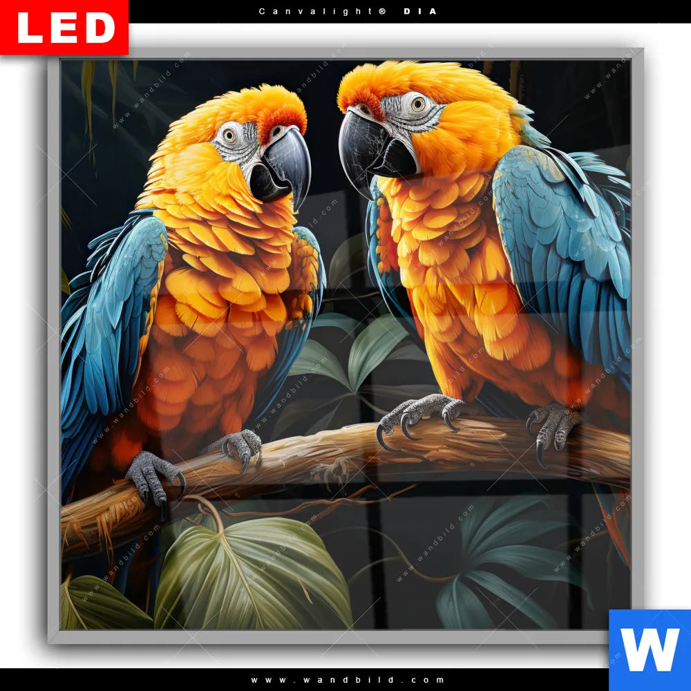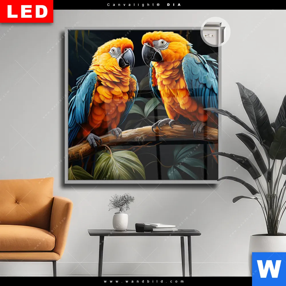 Canvalight® DIA Leuchtbild | Papageien auf einem Ast | Quadrat