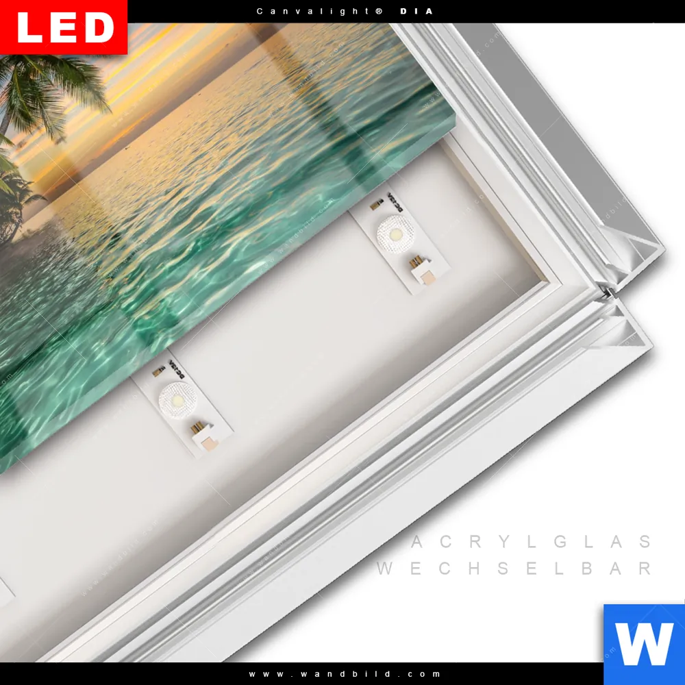LED-Glasbild mit austauschbarem Acrylglas-Druck (Wechselbild)