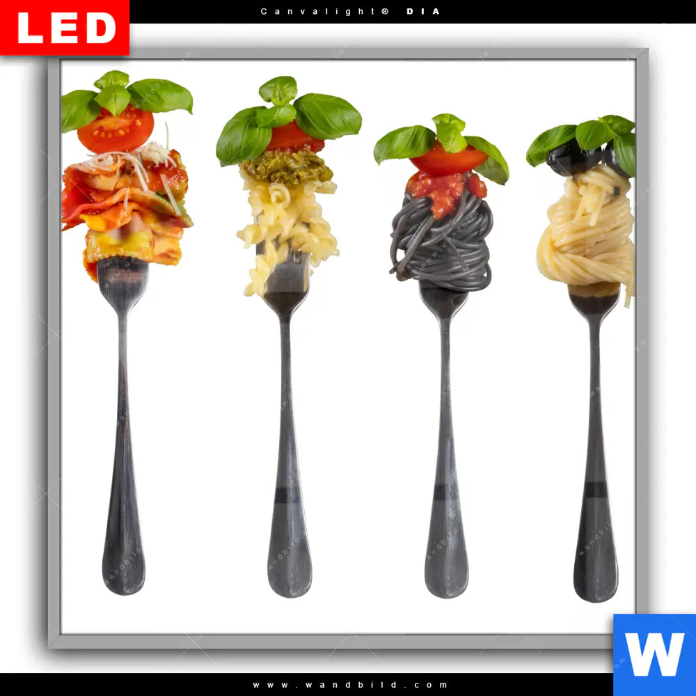 Canvalight® DIA Leuchtbild | Pasta auf Gabeln | Quadrat