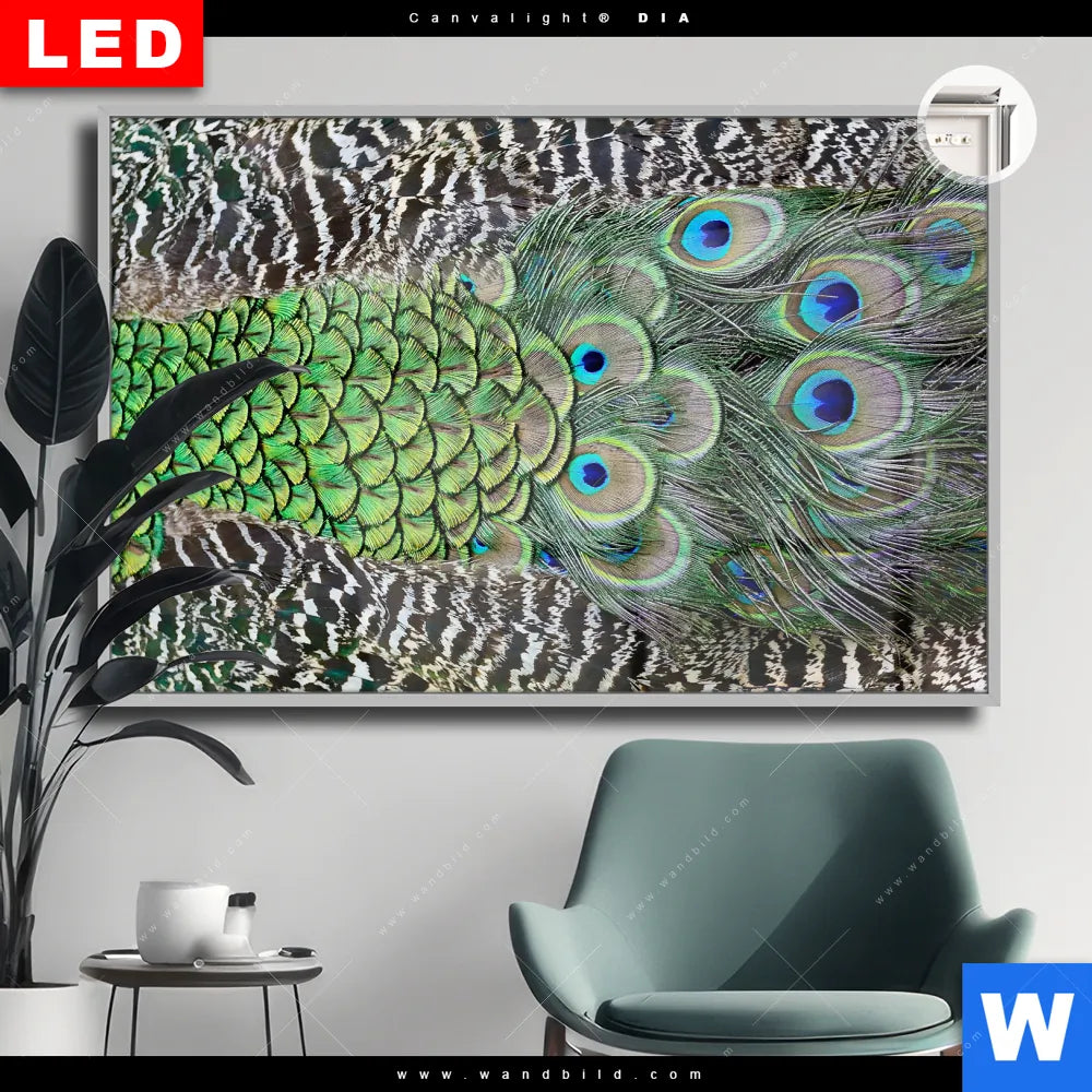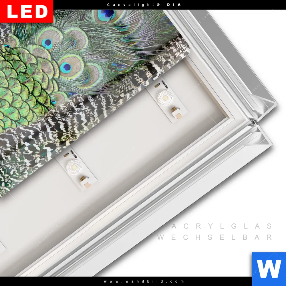 Canvalight® DIA Leuchtbild | Pfaufedern | Querformat