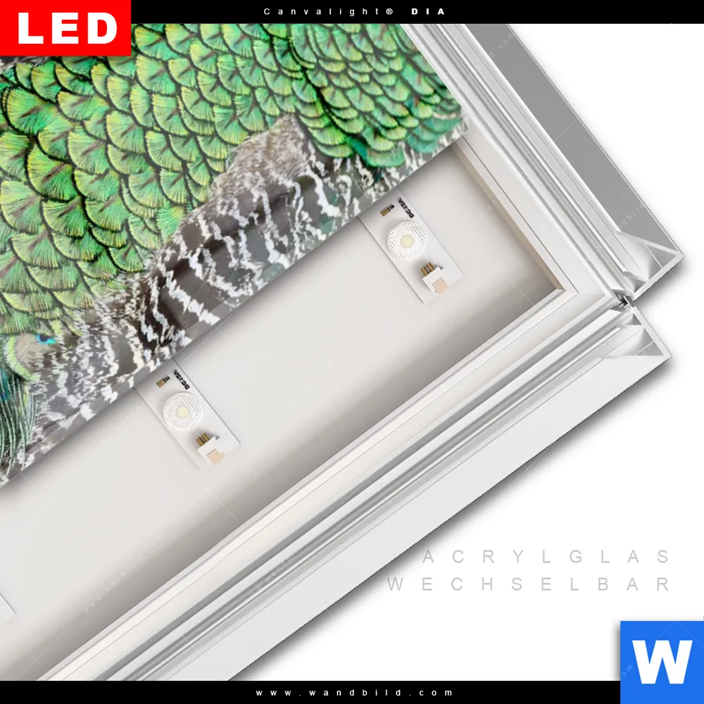Canvalight® DIA Leuchtbild | Pfaufedern | Schmal