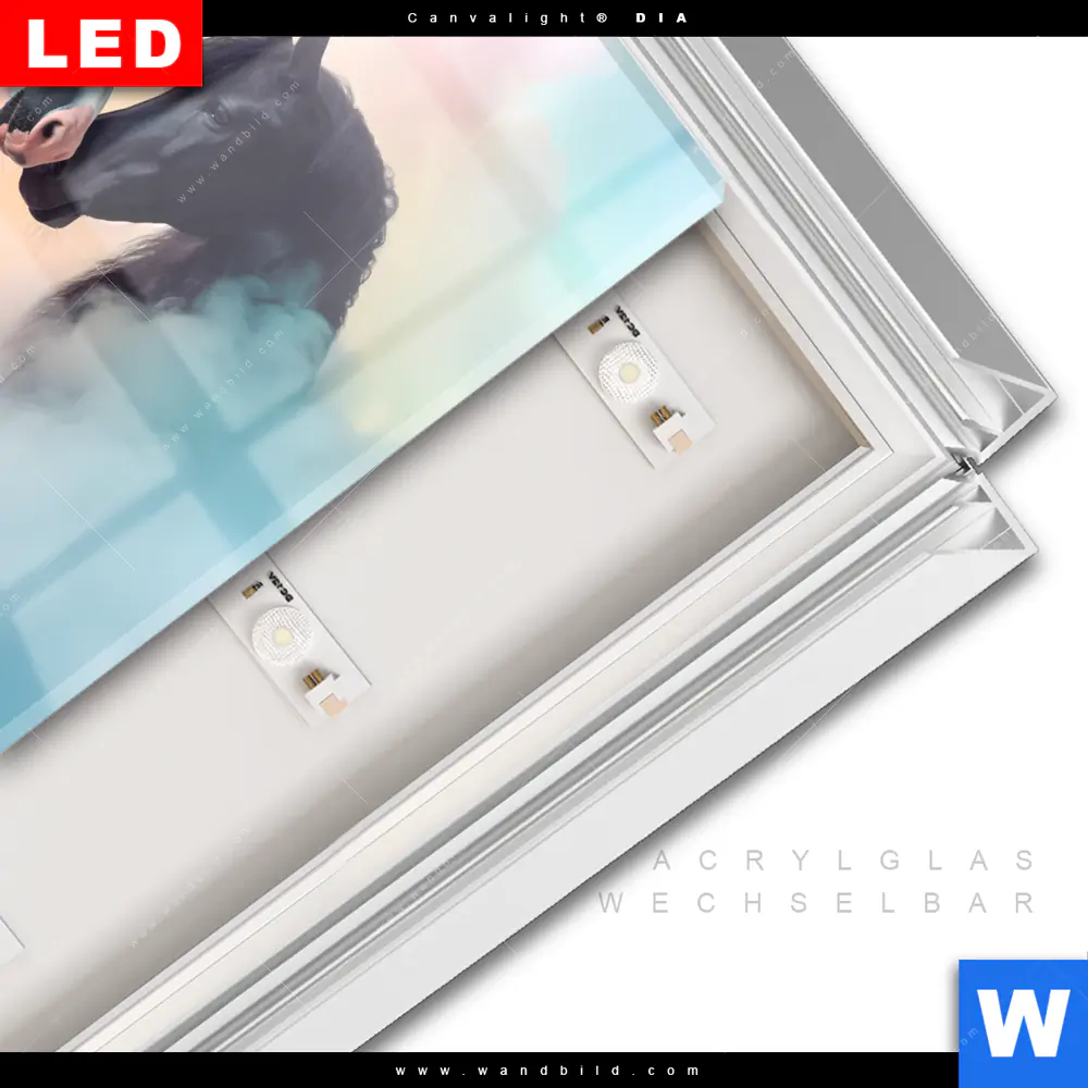 LED-Glasbild mit austauschbarem Acrylglas-Druck (Wechselbild)