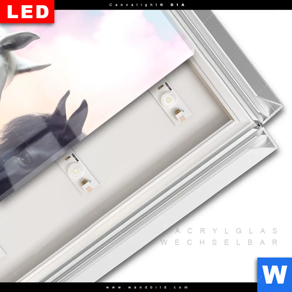 LED-Glasbild mit austauschbarem Acrylglas-Druck (Wechselbild)