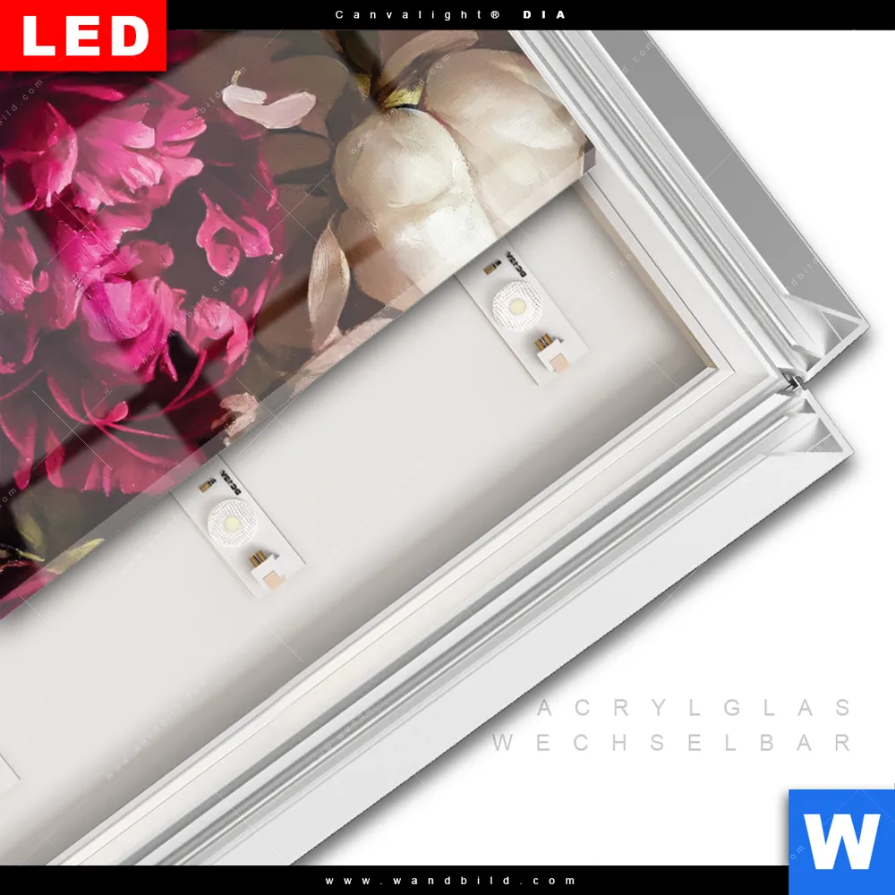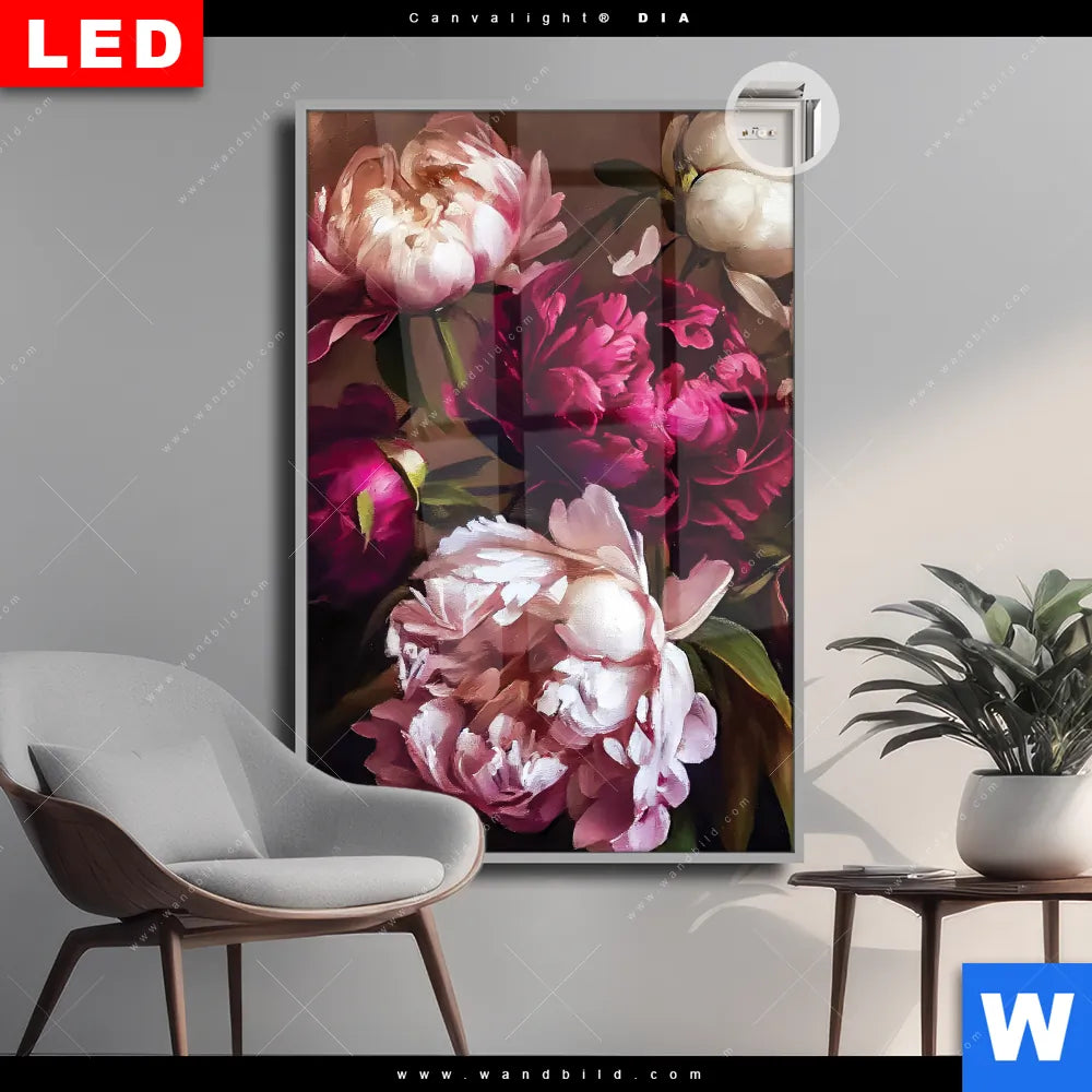 Canvalight® DIA Leuchtbild | Pfingstrosen im Barockstil | Hochformat
