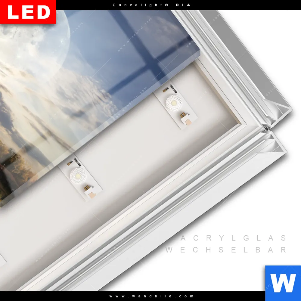 LED-Glasbild mit austauschbarem Acrylglas-Druck (Wechselbild)
