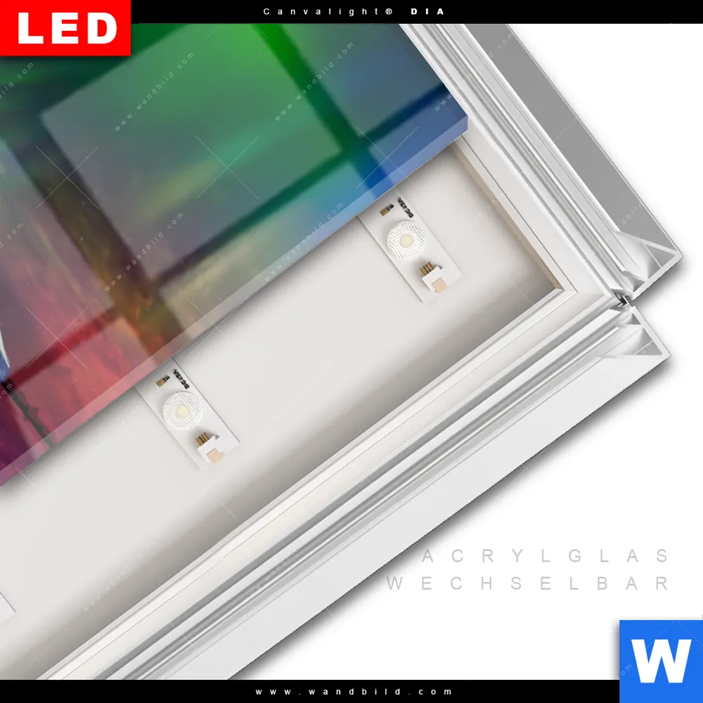 LED-Glasbild mit austauschbarem Acrylglas-Druck (Wechselbild)