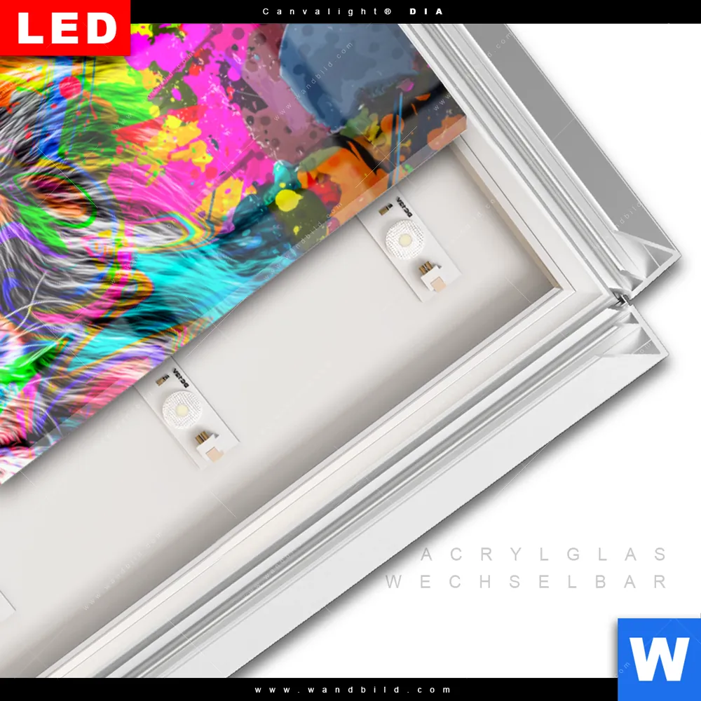 LED-Glasbild mit austauschbarem Acrylglas-Druck (Wechselbild)