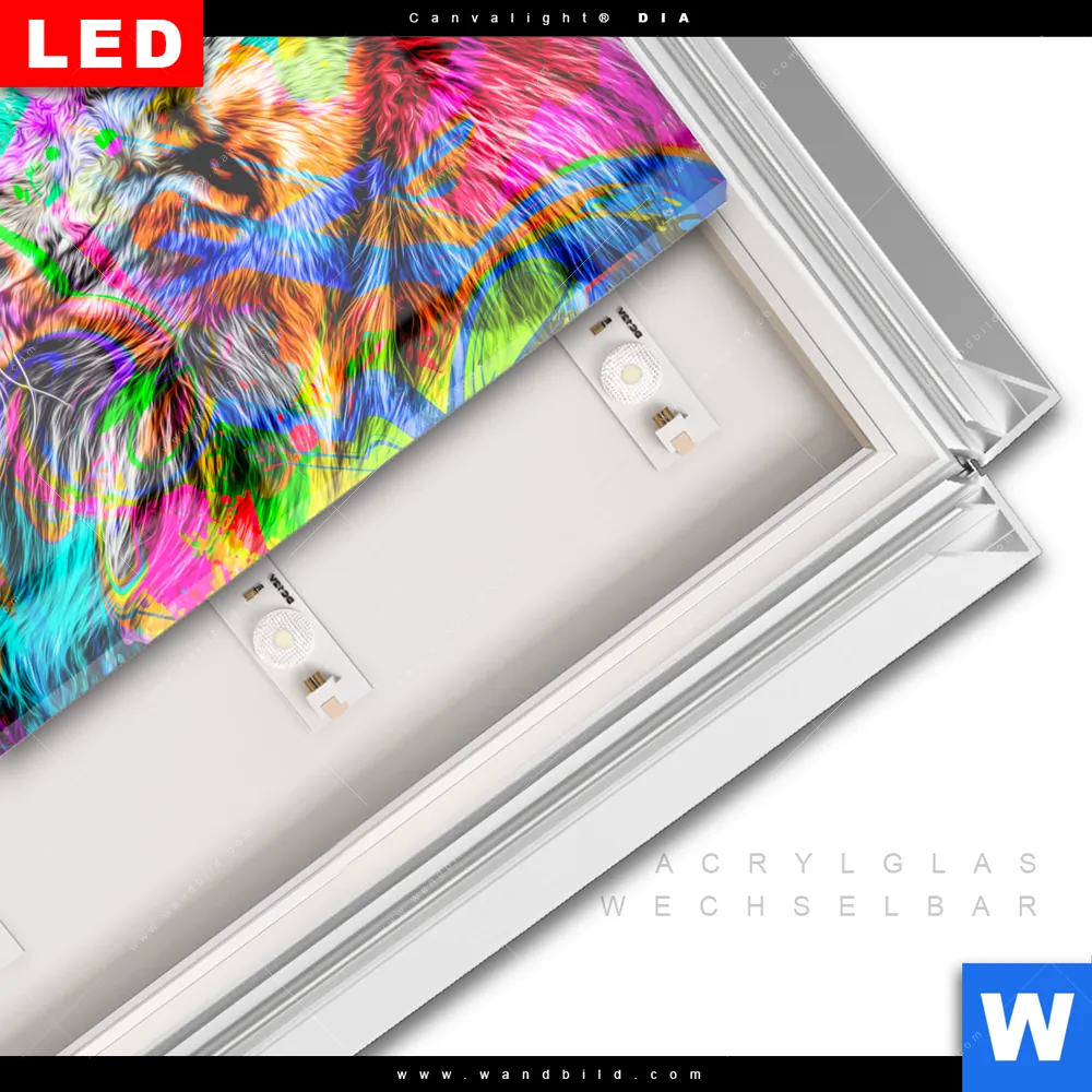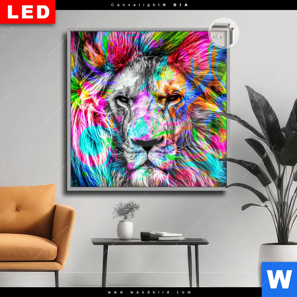 Canvalight® DIA Leuchtbild | Pop Art Löwe No.1 | Quadrat