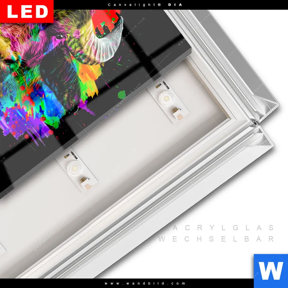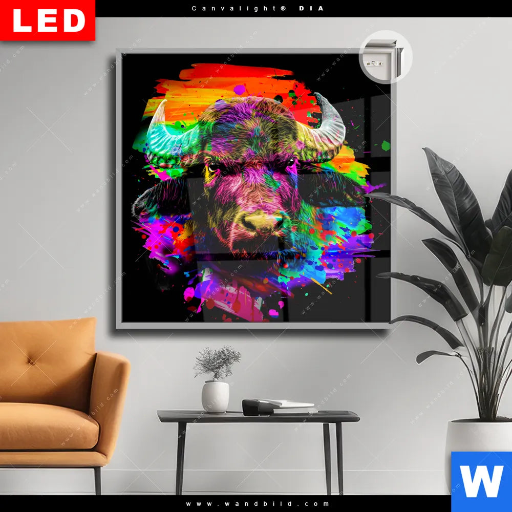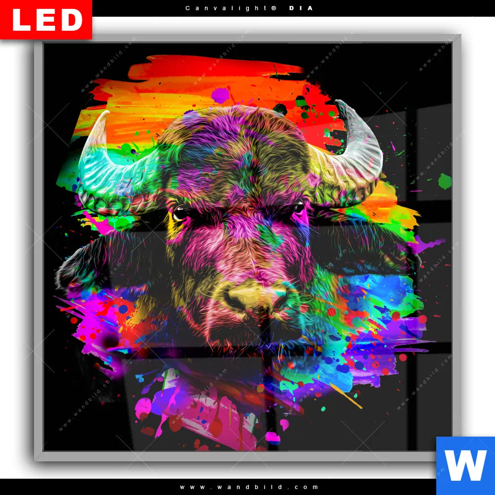 Canvalight® DIA Leuchtbild | Pop Art Stier | Quadrat